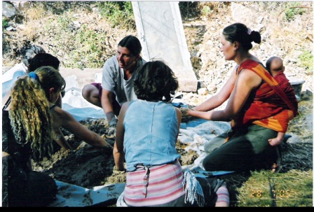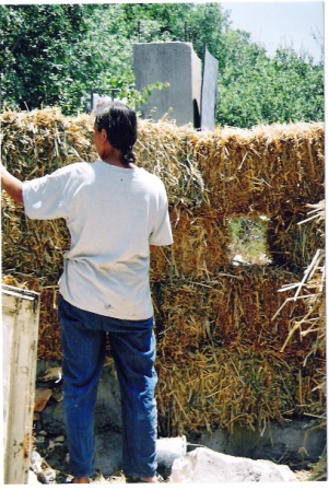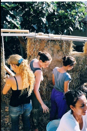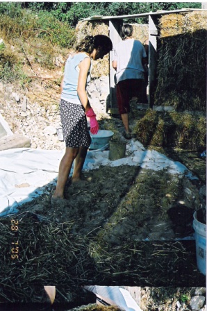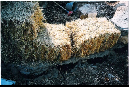 הכנות לסדנא - בניית יסודות והנחת בלות הקש |