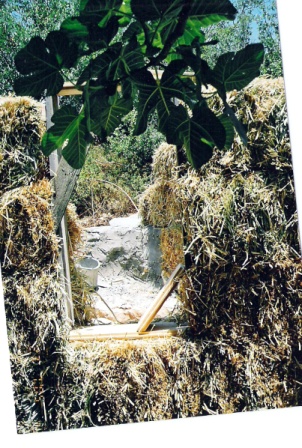 | הנחת היסוד מצמיגים משומשים | בניית המבנה מבלות קש | ||