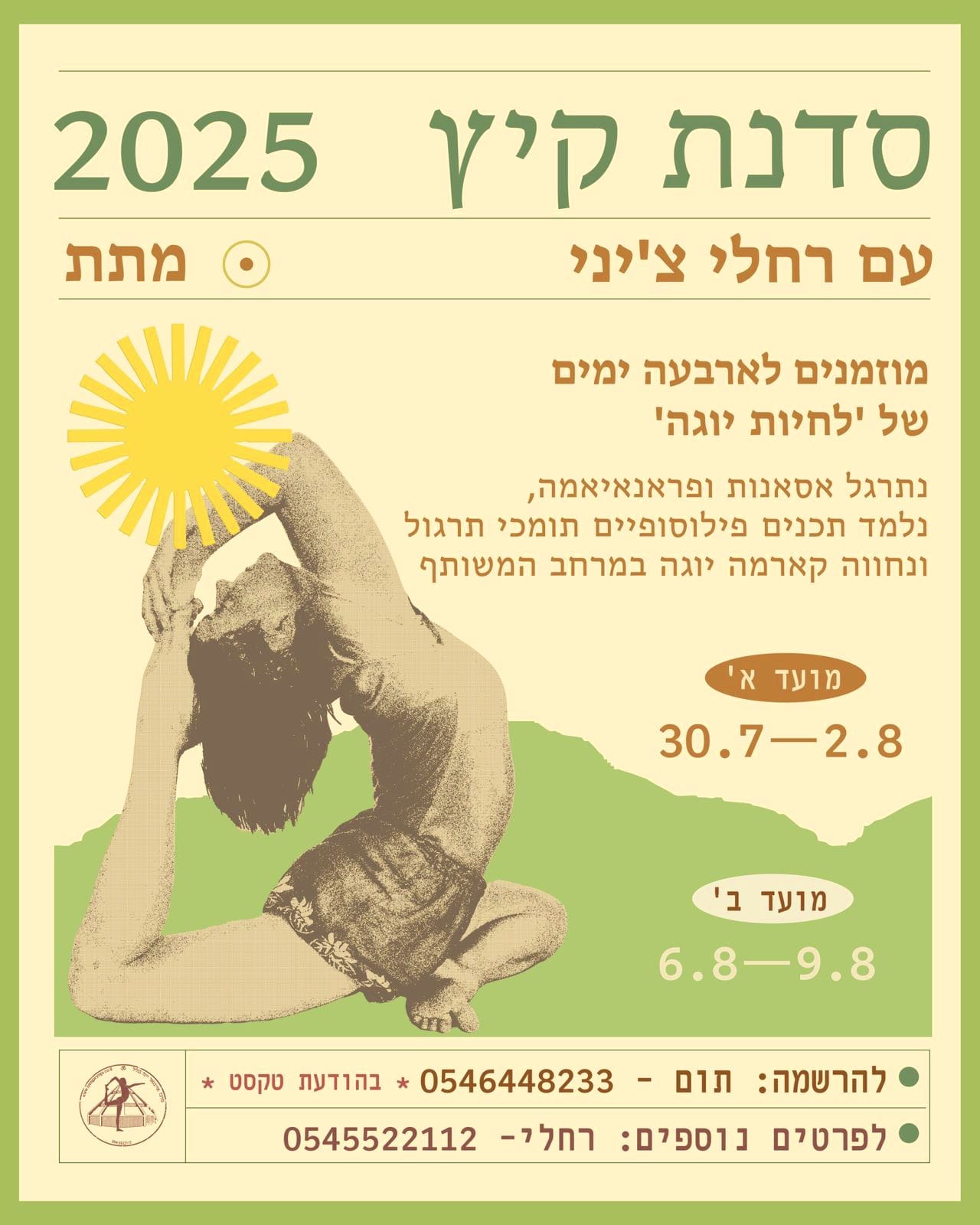 30.7-2.8 סדנת קיץ במתת רביעי –שבת, עם אפשרות למועד ב שהייה רציפה כוללת 6.8 – 9.8